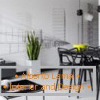 Контрастните комбинации тука создаваат комплетно некомплицирано. На пример, традиционалната комбинација на бели и црни бои може да се постигне со темни текстилни производи, светилки или декор. Дополнителен ефект на контраст може да се постигне преку темниот ѕид. Комбинацијата на темно-бело ќе го нагласи главниот предмет на мебел и ќе додаде хармонија на целокупниот ентериер.