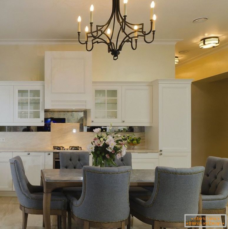 Неверојатно практичен кујнски остров со маса направена од камен Corian врши две функции одеднаш: храната може да се готви на неа, и постојат. Во пространите шкафове и фиоки во основата на островот, се поставени многу неопходни и корисни работи.